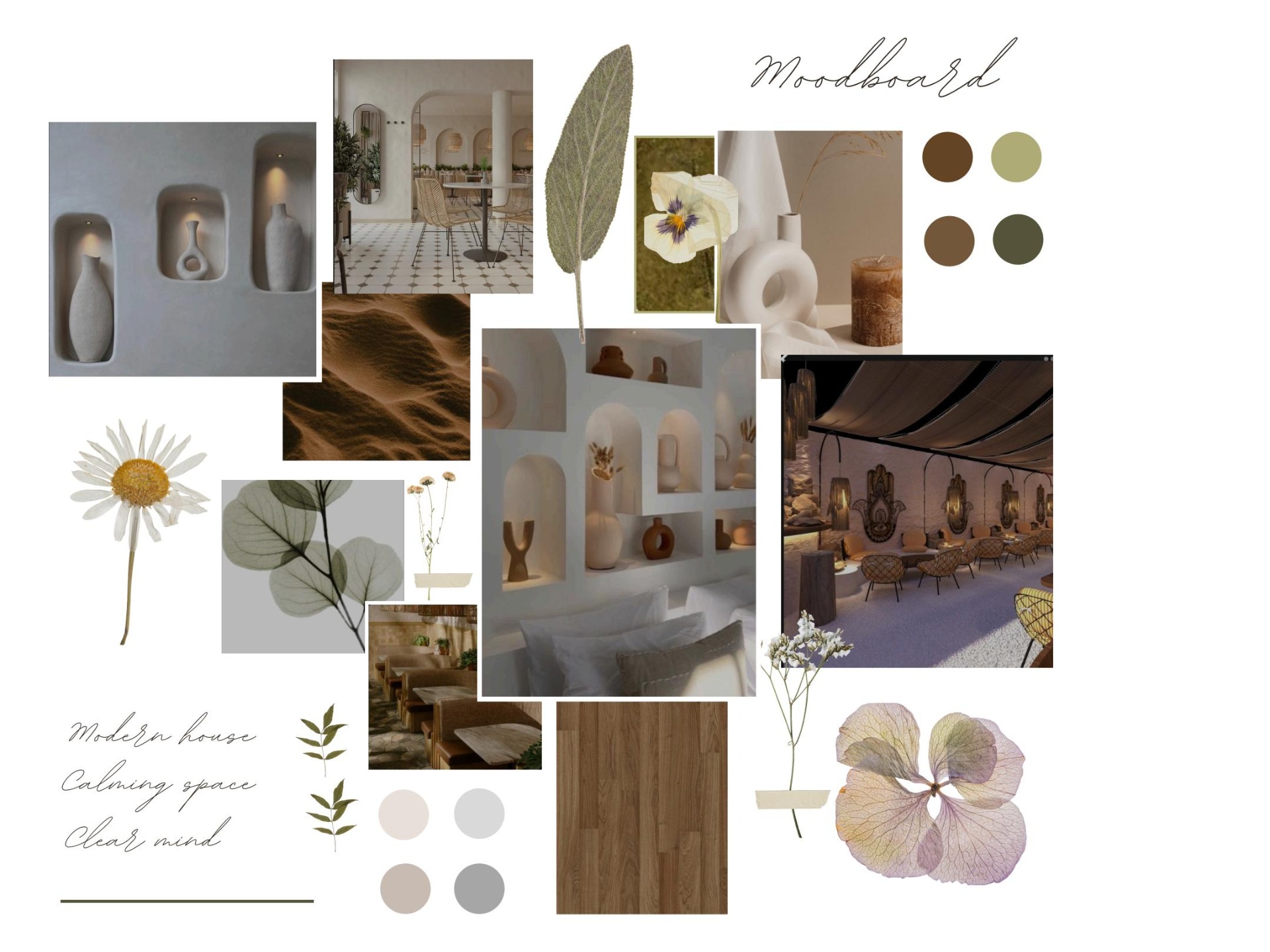 Per questo progetto mi hanno chiesto di fare un mood board su come vorrei che fosse il mio ristorante.Ho deciso di ispirarmi al modern style utilizzando colori neutri sulle tonalità del beije e ho aggiunto anche un tocco di verde per renderlo ancor più invitante e per richiamare la natura. Dopodichè ho scelto un nome per il ristorante.